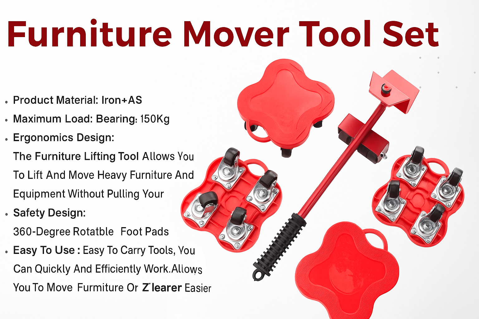 • Easy To Use : Easy To Carry Tools, You Can Quickly And Efficiently Work.Allows You To Move Furniture Or Heavy Objects Easier